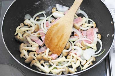 ・ベーコンは1cm幅に切る。
