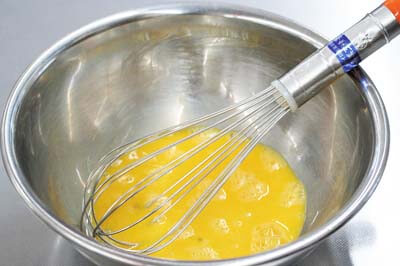 ボールに卵を入れ、泡立てないように溶きほぐす。