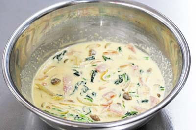 炒めた具材を加えて混ぜ合わせる。