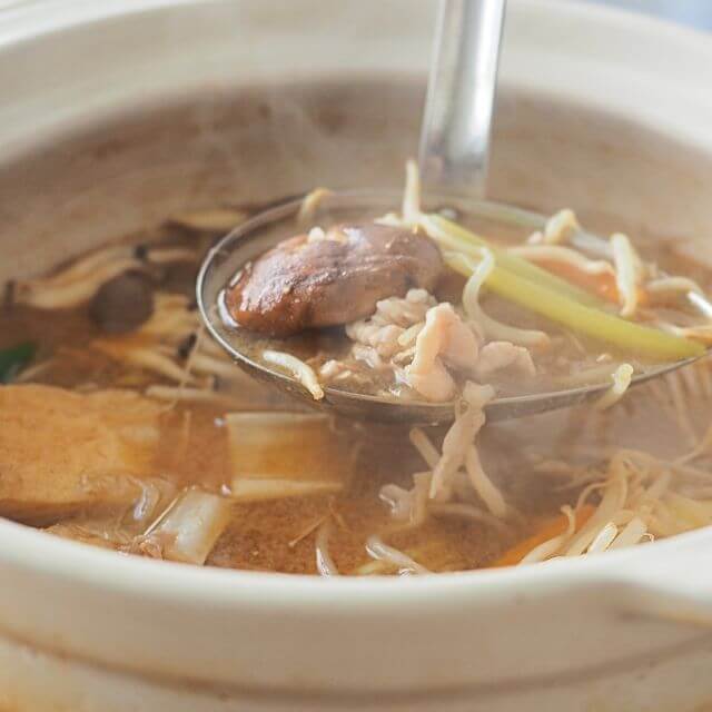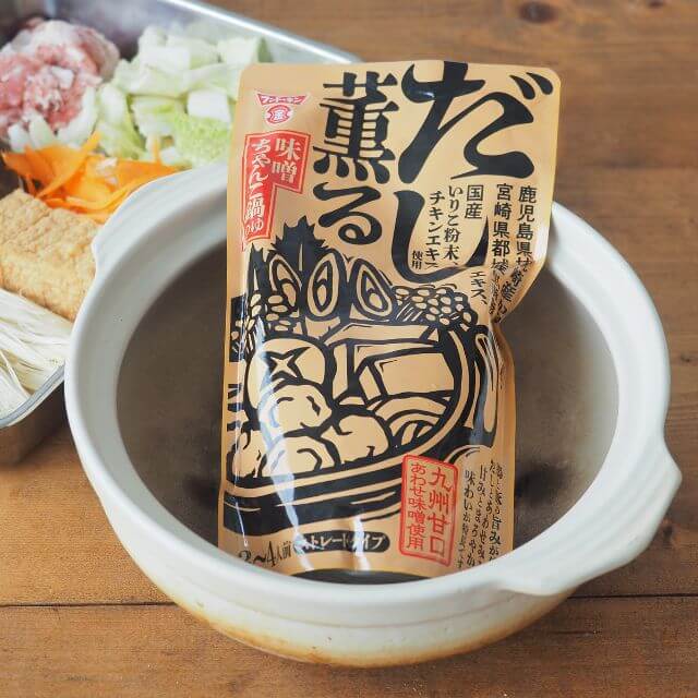 鶏と豚の旨みが効いた、だしとあわせみその甘みとまろやかな味わいが特長です。九州甘口あわせ味噌を使用。
