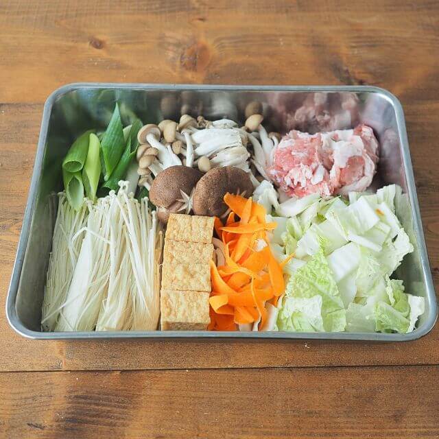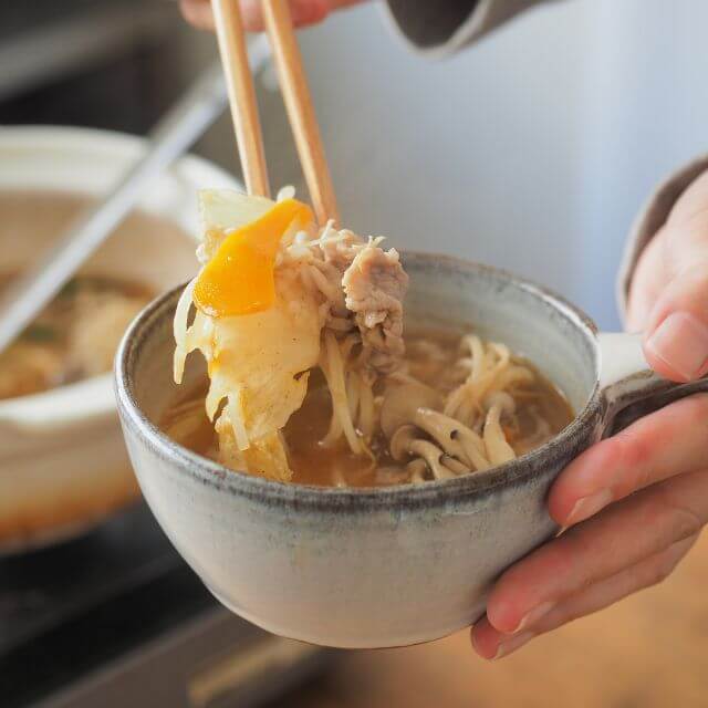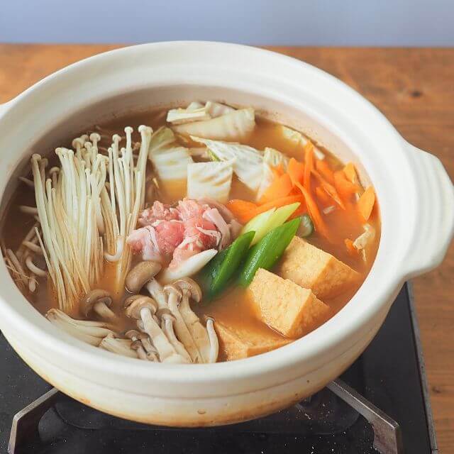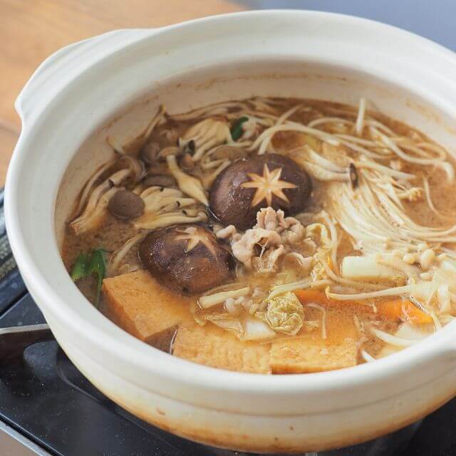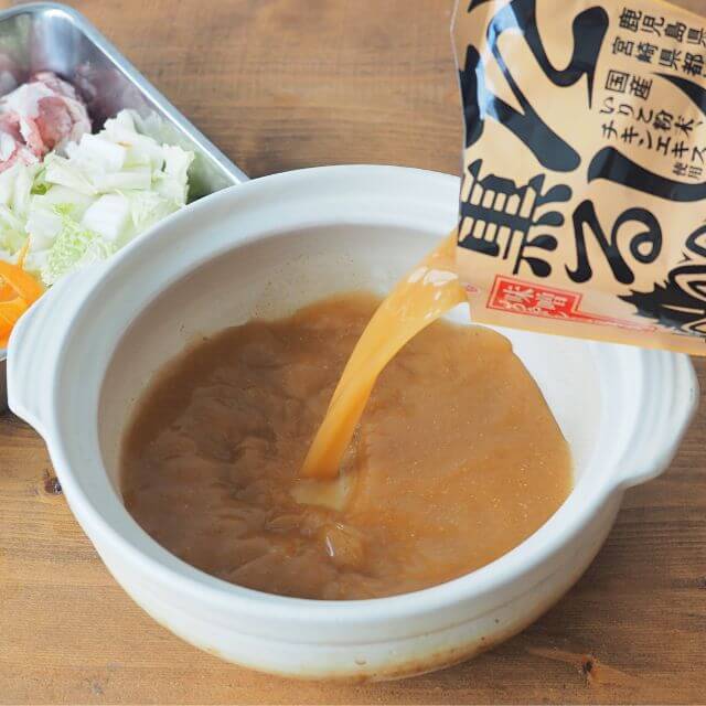 | 作り方 | 【具材例(3~4人前)】 豚肉…300g 白菜…1/4株 長ねぎ…1本 えのき…100g 厚揚げ…1/2丁 しめじ…100g 本品…1袋 ◎鶏だんごやにんじんなどもおすすめです 【作り方】 1)本品1袋を鍋に入れて肉類・白菜の芯(白い部分)を入れて煮込んでください。 2)1)で入れた具材が煮えたらその他の具材を加えます。火が通ったら出来上がりです。 ◎お好みで一味唐辛子や柚子こしょうを加えてもおいしく召し上がれます。 ◎〆のおすすめ!残ったつゆに中華麺を入れて一煮立ちさせてお召し上がりください。 ※鍋つゆはよく振ってから鍋に入れてください |