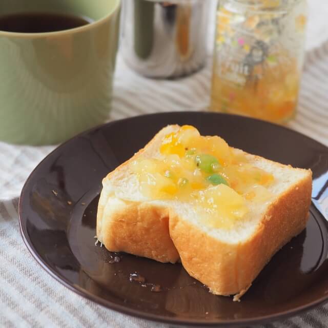 5種類の角切りフルーツ(パイナップル、黄桃、洋梨、キウイ、若桃)とグレープフルーツが入った、アップルパイ風味のスプレッドです。クラッカーやスコーン、ワッフル等の様々な用途にお使いいただけます。