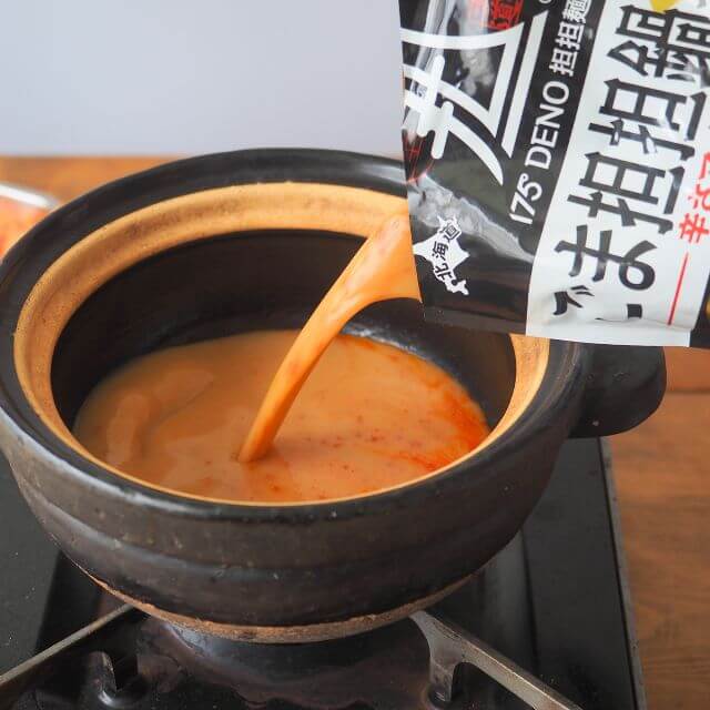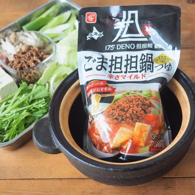 札幌の名店「175°DENO担担麺」監修の濃厚なごまの風味とオリジナルラー油を使用したマイルドな辛さのごま担担鍋つゆです。