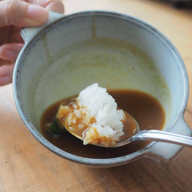 残ったスープにカレールウを溶いて『えび旨カレー』としてお楽しみいただけます。