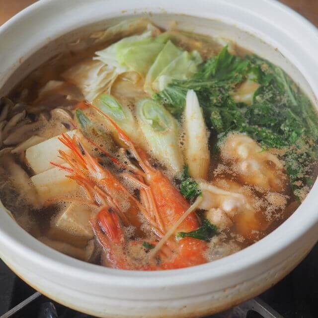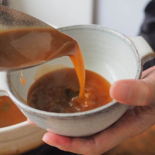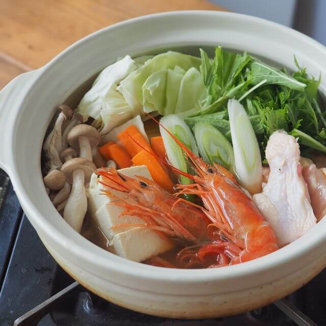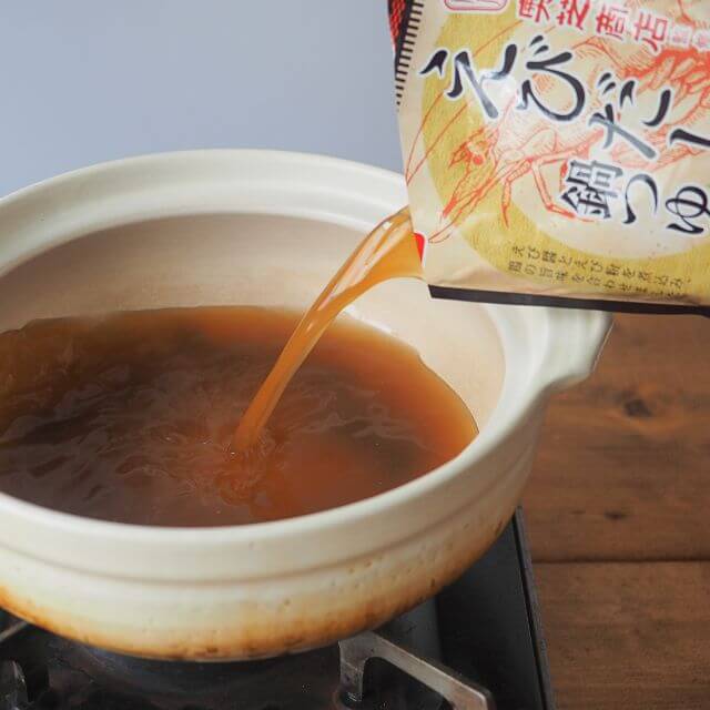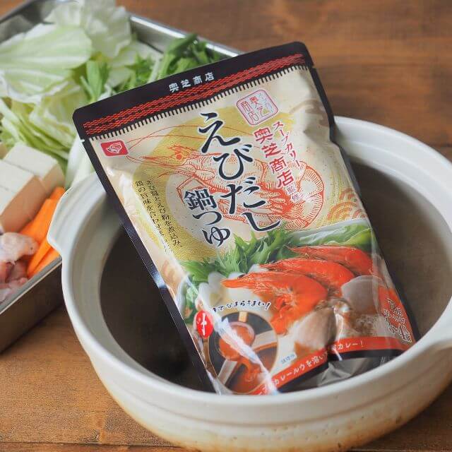 スープカレーの名店「奥芝商店」監修。えび醤とえび粉を煮込み、鶏の旨味を合わせた鍋つゆです。