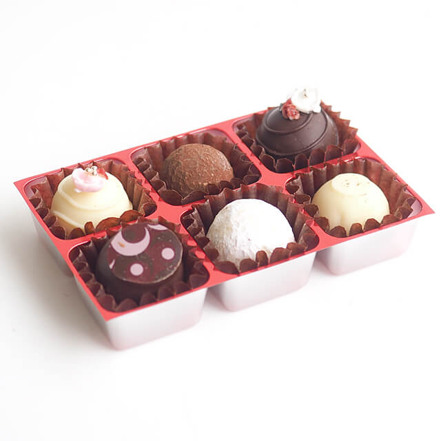 主役のチョコを引き立たせる、シンプルな6個用チョコレートトレーです。