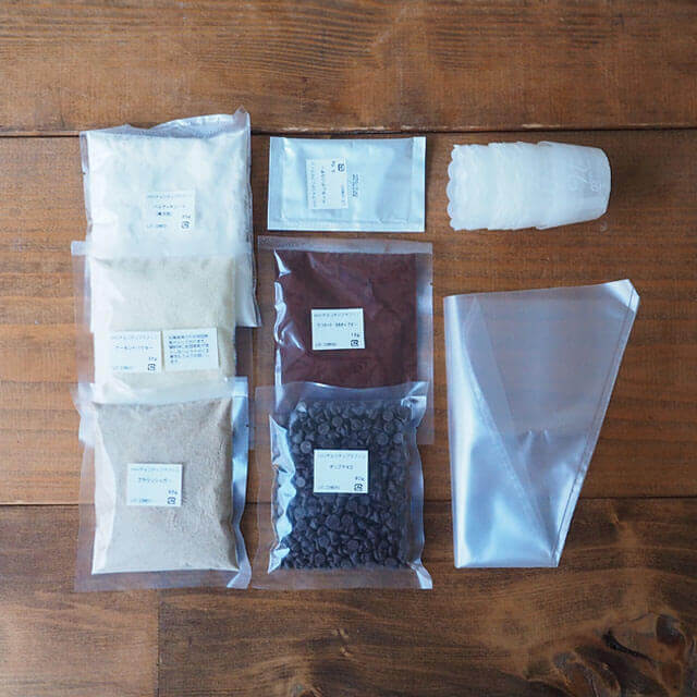 プロフーズの簡単手作りキットは、専門店ならではの高品質な材料と自分でチャレンジできる分かりやすいレシピが魅力。レシピに必要な材料がわかるよう、材料はすべて個別に包装しています。
