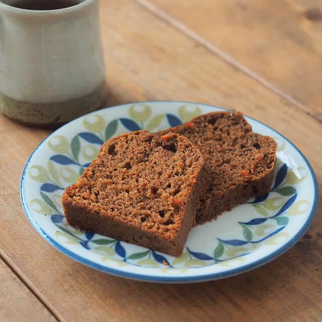 粒状のにんじんとシナモンパウダーが入っているミックス粉で、卵・サラダ油・水を加え、混ぜて焼くだけで本格的なキャロットケーキができあがります。