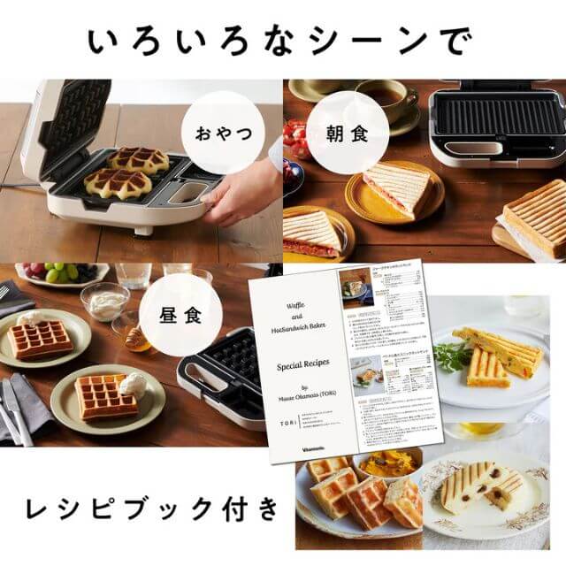 本格的なベルギーワッフルが焼ける「ワッフルプレート」と、耳付きホットサンドが焼ける「マルチサンドプレート」の2種類のプレートが付いた調理家電です。