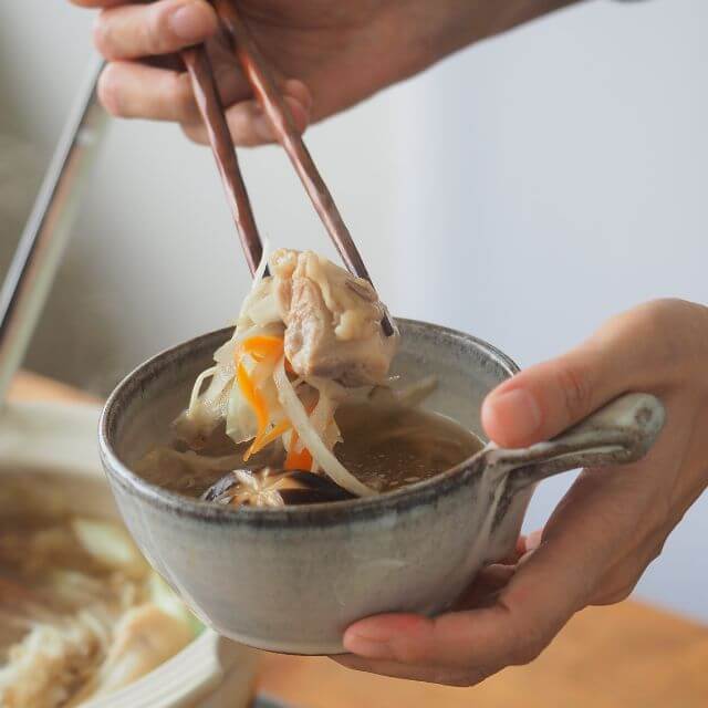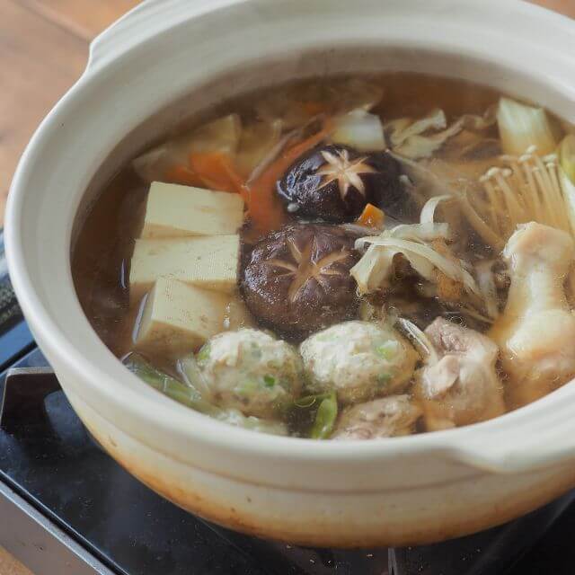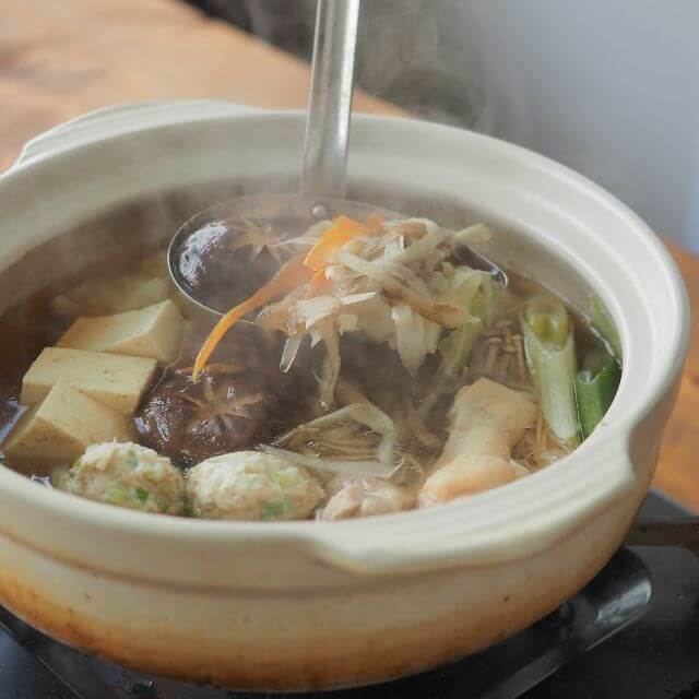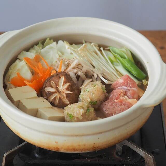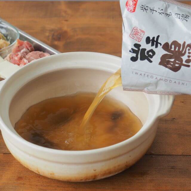 | おいしい鍋のつくり方 | 【材料一例(3~4人前)】 肉(鶏肉・豚肉)、魚(たら・むつ・鯛など)、各種つみれなどお好みで300~400g、白菜400g(約1/4株)、長ネギ2本、豆腐1/2丁、えのき茸100g、椎茸5枚、ささがきごぼう50g、三つ葉適量 ●スープをよく振ってから鍋に入れます。一度沸騰させてから肉、魚、つみれを入れ5分ほど煮込みます。吹きこぼれにご注意ください。 ●野菜などお好みの具材を入れて一煮立ちさせてお召し上がりください。 吹きこぼれない様火加減に注意してください。 【おいしく食べるポイント】 ◎肉・魚・つみれなどは少し長めに煮込むと、よりおいしくお召し上がり頂けます。 ◎お好みで、ニンニク・ニラ・唐辛子などを加えてもおいしく召し上がれます。 ◎最後にうどん、ラーメン、雑炊でお楽しみください。 ※旨み成分が凝固していることがありますので、よく振ってお使いください。 |