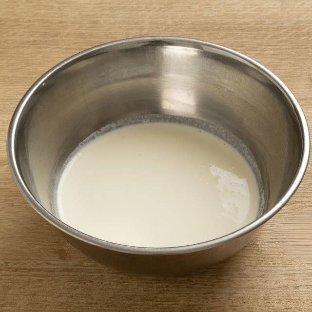 | 上手なホイップの方法 | 1)ボウルに氷水を用意します。 2)冷蔵庫でよく冷やした本品200mlと砂糖 (約15g)を別の大きめのボウルに入れます。 ※本品の温度が高いとホイップできない場合があります。 3)氷水で底を冷やしながら、涼しい場所で、空気を良く抱き込むようにすばやく泡立てます。 冷やしながら泡立てるのがポイント! ※ステンレス製ボウルは、ホイップするときボウル内面の金属が剥がれ落ちることがあります。 ※煮込み料理に使う時は、火を止める直前に加えてください。 ※コーヒーに入れると、コーヒーの温度やコーヒー豆の種類により固まることがあります。 ※開封後は賞味期限にかかわらず、早めにご使用ください。 |