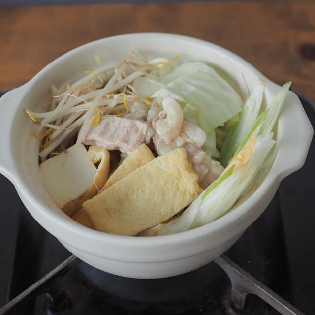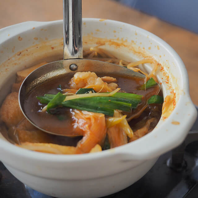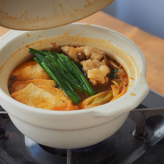 | 原材料名 | 鍋スティック[しょうゆ(国内製造)、砂糖、ぶどう糖果糖液糖、みそ、はちみつ、コチュジャン、食塩、米発酵調味料、唐辛子、にんにく、豆板醤、かつおエキス、昆布エキス、オイスターソース、煮干粉末/調味料(アミノ酸等)、アルコール、増粘多糖類、パプリカ色素、(一部に小麦・大豆を含む)]、辛みたれ[豆板醤、しょうゆ、唐辛子、米発酵調味料、デキストリン、食塩/アルコール、pH調整剤、(一部に小麦・大豆を含む)] |