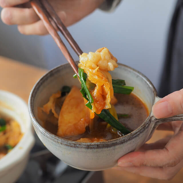 | 使用上の注意 | ※内袋開封後は1回で使い切ってください。 ※内袋開封時、中身がはねて衣類を汚さないようにご注意ください。 ※開封時、袋のフチで手を切らないようにご注意ください。 ※調理中のやけどにご注意ください。 ※製品中に浮遊する白及び黒いものは、唐辛子の一部です。品質に問題はありません。 |