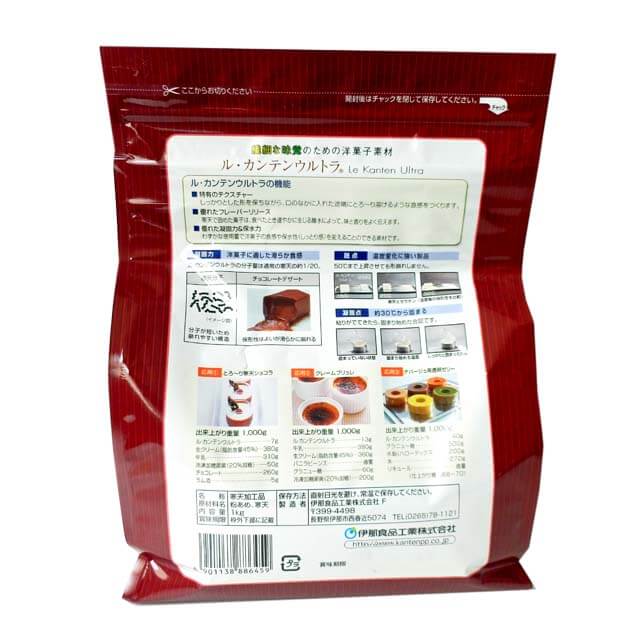 ル・カンテンウルトラは、『低ゼリー強度寒天』を原料にした洋菓子用の寒天です。