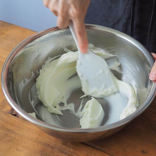 ①マスカルポーネとグラニュー糖を混ぜる。