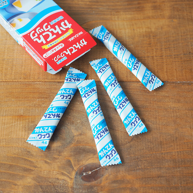 | かんてんクックの使い方 | 1)水約500mlにかんてんクック1袋(4g)を入れて火にかけ、かき混ぜながら煮溶かします。 ※3)で牛乳・果汁を加える場合は水の量を調節してください。 2)沸騰したら、ふきこぼれない程度の火にして1~2分間沸騰を続けます。 3)火を止め、砂糖・牛乳・果汁などでお好みの味付けをします。 4)型に流し、フルーツなどを入れ固めます。常温で固まりますが、冷蔵庫で冷やすといっそう美味しく召し上がれます。 ※調理中のやけどにご注意ください。 ※果汁など酸味のあるものは、火を止めてから加えてください。一緒に煮たてると固まらなくなることがあります。 |