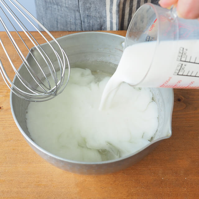 牛乳を常温に戻す。