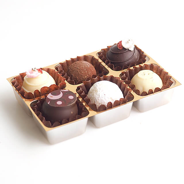 主役のチョコを引き立たせる、シンプルな6個用チョコレートトレーです。