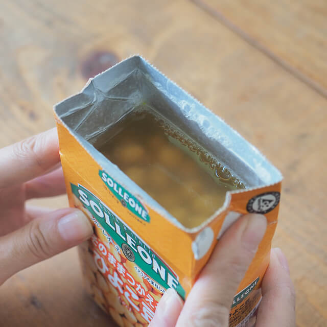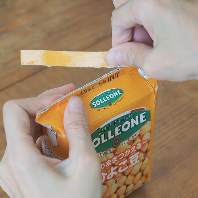 | 紙パックなら… | ・手で簡単に開けられる! ・長期保存ができる! ・使い終わったら小さくたたんで捨てられる! |