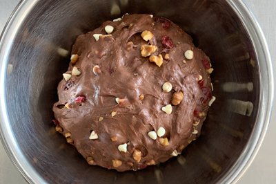 クランベリーの酸味とクルミの香ばしさ、濃厚なチョコレートのバランスが絶妙。もっちり、ソフトな食感です。