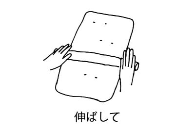 | 3)【分割・ベンチタイム】 ボールから生地を取り出し、5分割する。 それぞれを丸くまとめ、めん棒で平らに伸ばす。 生地の両側を中心に向かって折り、めん棒で軽く伸ばしたら、手前から生地を丸め俵型にする。 とじ目を下にし、ラップか濡れ布巾をかけて15分生地を休ませる。 ※ベンチタイム:触って傷ついた生地を休ませること。 |