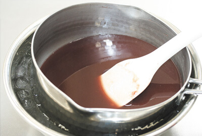 沸騰するまで中火で加熱し、3分程度ゆっくりとかき混ぜながら煮る。 ※Bしろ餡、C抹茶餡についても同様の作業になります。 |