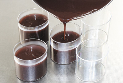 | 4)3を氷水にあてて冷やし、カップに流す。 冷蔵庫で冷やし固める。 | ![]() ![]() |