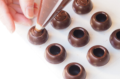 中が空洞になった球状のチョコレート「トリフシェル」を使ったお手軽レシピ。ガナッシュを入れて固めるたけで、本格的なトフュフを作ることができます。