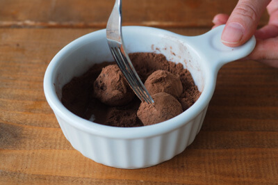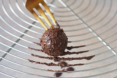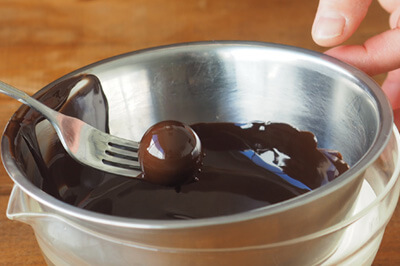 | 5)固まった2)をコーティングチョコレートにくぐらせる。 | ![]() |