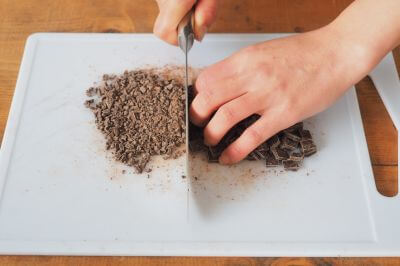 | 1)チョコレートの1/3を細かく刻む。 | ![]() |